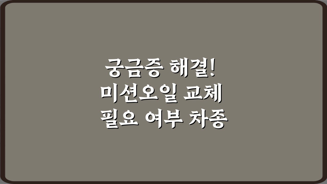 내 차 미션오일 교체, 꼭 해야 할까? 차종별 다른 필요 여부와 최적 주기를 7가지 핵심 포인트로 완벽 정리! 불필요한 지출 없이 내 차를 관리하는 비법을 지금 확인하세요.